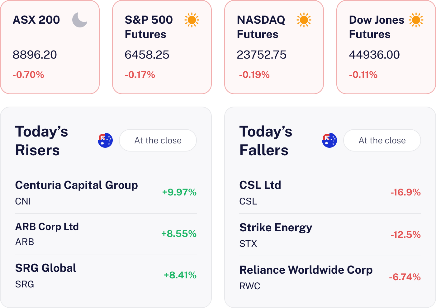 The market dipped 0.70%, weighed down by lacklustre earnings and company specific troubles. CSL led the charge south, plummeting 16.9% after announcing workforce cuts. Despite some tech and lending stocks showing resilience, they couldn’t buoy the overall market mood.