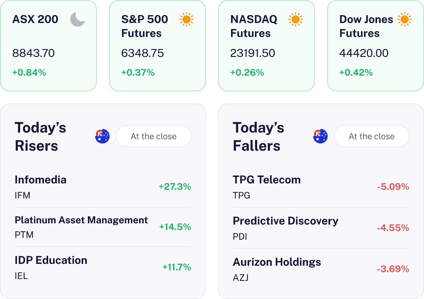 The ASX 200 climbed 0.84% to a new record high today driven by strong gains in banks like CBA and Westpac, as well as mining giant BHP and healthcare leader CSL, all of which posted solid advances. Investor optimism was further boosted by growing expectations of interest rate cuts both in Australia and the U.S., which lifted financial and real estate stocks.