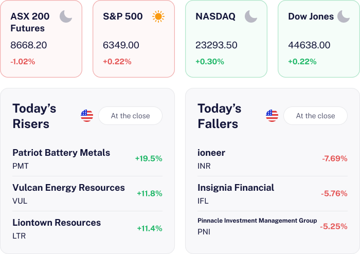 The ASX 200 fell 1.02% today as weakness in major bank stocks weighed heavily on the market, with CBA, NAB and Westpac all posting losses of more than 2%. Broader negative sentiment was driven by disappointing earnings updates and concerns over global growth, while investors also reacted to softer commodity prices.