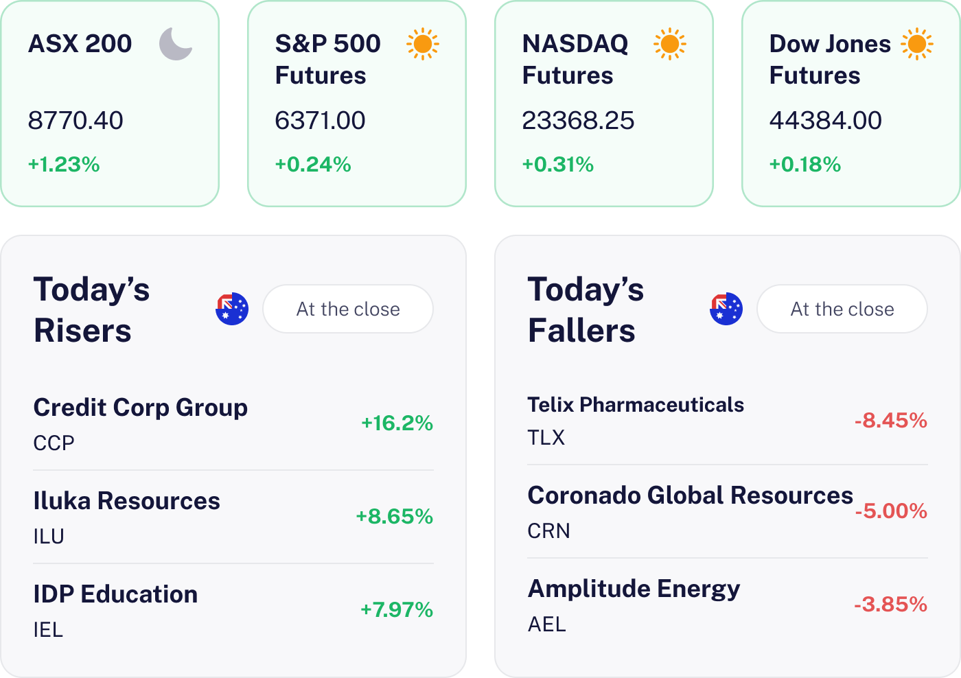 Austal shares surged 7.94% to $6.93 after locking in a major strategic shipbuilding deal with the Federal Government. Under the agreement, its new subsidiary, Austal Defence Australia, will lead the build and delivery of 26 surface combatant vessels from Henderson, WA.