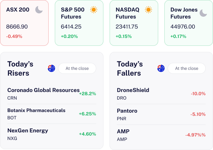 The ASX 200 fell 0.49% today as cautious comments from the Reserve Bank of Australia’s governor led investors to pare back expectations for interest rate cuts this year, weighing on major banks and financials.